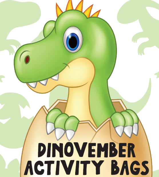 REGISTER to pick up a special DINOVEMBER Activity Bag on Monday November 24! Your activity bag will include a dinosaur egg to hatch your own dinosaur, a fossil, and fun dinosaur themed activities. Only a few spots left.